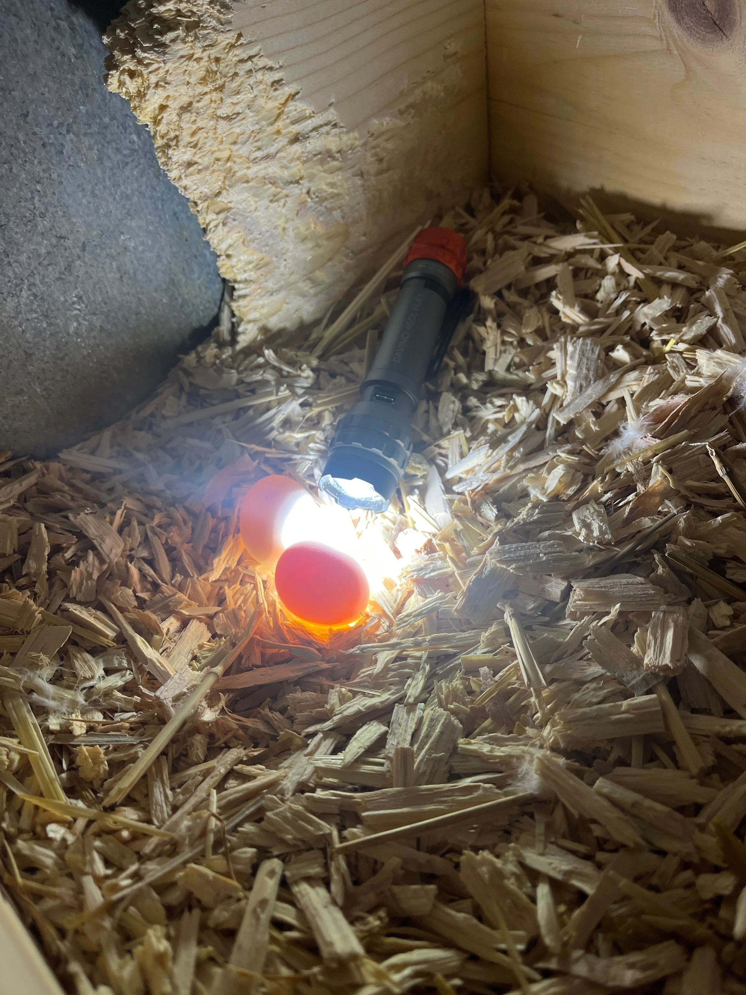 March 28 Day 12 - First 2 eggs showing very slight veining.